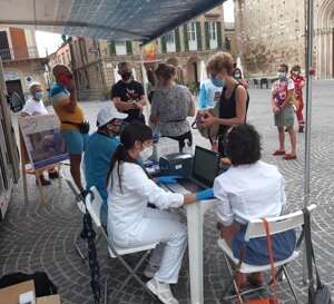 Ecco alcune immagini dell'importante giornata di prevenzione in piazza Duomo ad Atri con Test Anticorpali Covid 19 (protocollo Reflex) all'interno del Camper Medico.